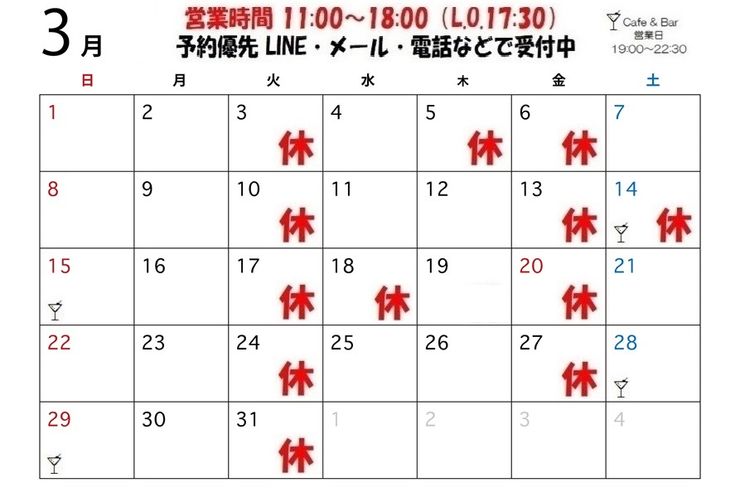 | 営業時間 | 11:00~18:00(L.O.17:30)