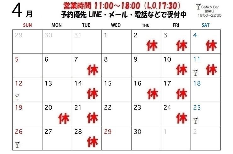そんな日和に当店の4月の営業スケジュールをお知らせいたします。